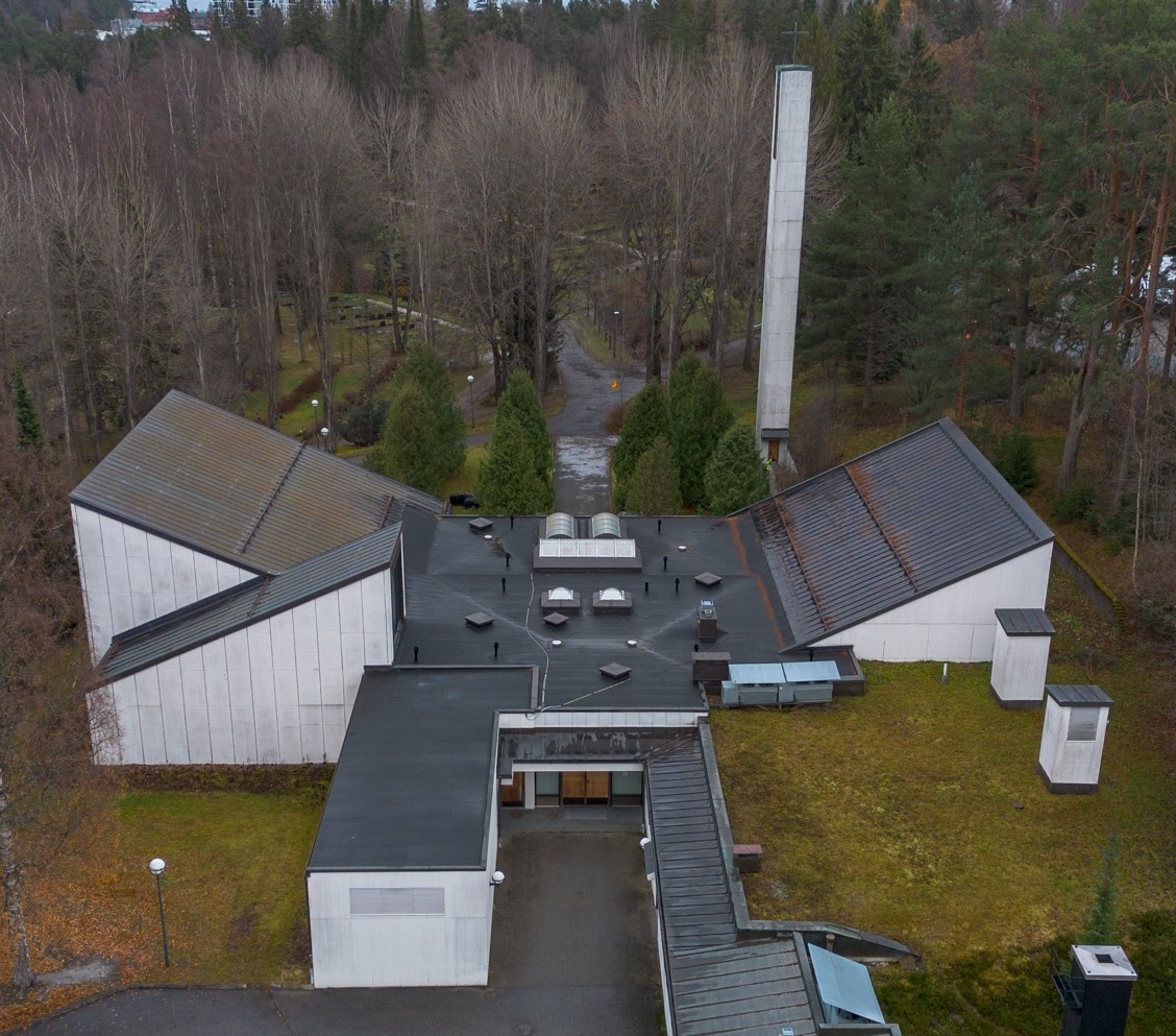 Kuparikate purettiin ja alle asennettiin katevaneri, aluskermi ja päälle uusi kuparikatto. Lisäksi uusimme tasakaton huopakatteen.